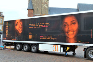 Op het Marktplein stond een speciale tentoonstelling in een vrachtwagen, waarin bezoekers een korte film konden bekijken en informatie kregen over femicide en de impact ervan op de samenleving.