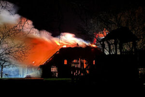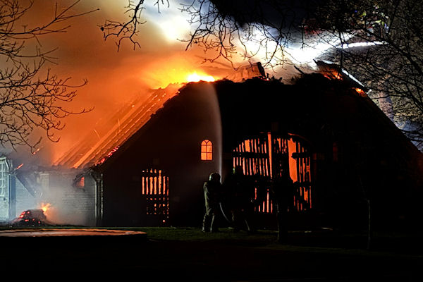 Ruurlo – Een boerderijwoning aan de Kaaldijk is zondagavond volledig verwoest door een hevige brand. Het vuur brak even vóór 20.00 uur uit en greep razendsnel om zich heen. Bij aankomst van de hulpdiensten sloegen de vlammen al uit het rieten dak. De meldkamer schaalde direct op naar grote brand, waardoor meerdere blusvoertuigen, waterwagens, een redvoertuig en een gespecialiseerd rietdakteam werden ingezet.